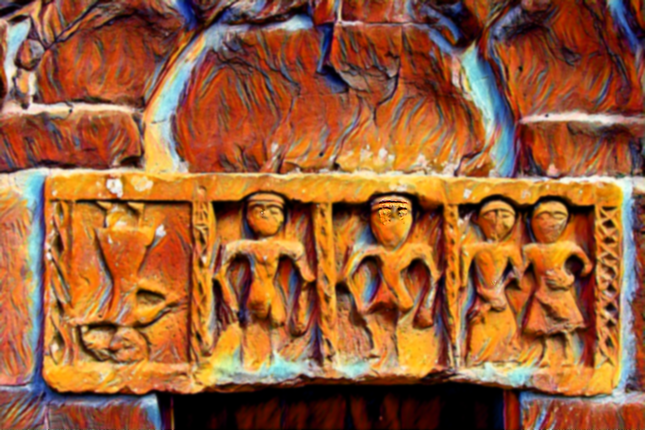 figure antropomorfe sono scolpite in rilievo entro quattro nicchie